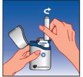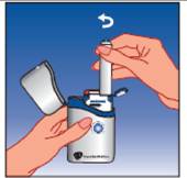 · Replacer immédiatement la seringue utilisée dans la recharge: · Renfoncer l'injecteur automatique dans l'espace vide de la recharge et dévisser dans le sens inverse des aiguilles d'une montre, · puis retirer l'injecteur automatique. |