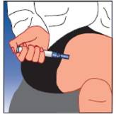 · Appliquer fermement l'injecteur automatique sur le côté de la cuisse (pour éliminer l'espace de sécurité). · Appuyer sur le déclencheur. · Maintenir l'injecteur automatique contre la cuisse pendant 10 secondes. |