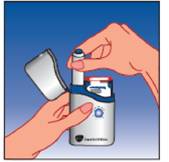 · Attention: lors de l'utilisation de l'injecteur, la recharge doit être conservée dans le boîtier. · Oter le sceau de sécurité protégeant la seringue. · Puis ouvrir le capuchon. · Le sceau de sécurité ôté indiquera que cette dose a été utilisée. · Si votre recharge ne comporte qu'une seringue, soyez attentif à utiliser l'alvéole la contenant. |