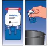 Dans un souci de sécurité, la recharge IMIGRANE a été spécialement conçue pour neutraliser les risques liés aux seringues usagées. |