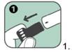 Enlever le bouchon noir protecteur de l'aiguille en tirant fortement dans le sens de la flèche; cela permet également de retirer une gaine grise de protection de l'aiguille.