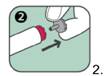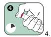 Appuyer sur le bouton rouge déclencheur de façon à entendre un « clic ». Maintenir en position pendant 10 secondes. Retirer lentement l'auto-injecteur de la cuisse puis masser légèrement le site d'injection.