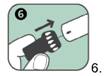 Enlever le bouchon gris de sécurité du bouton rouge déclencheur en tirant dans le sens de la flèche.