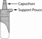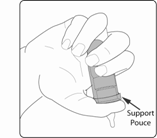 Placez le pouce sur le support ergonomique prévu spécialement à cet effet et 2 doigts à la base du flacon.