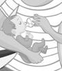 · Prendre l’enfant éveillé, l'installer en position semi-assise au creux du bras, la tête reposée sur le bras :