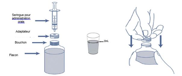 Toute suspension restante doit être éliminée 14 jours après reconstitution.