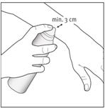 2- Appliquez la mousse en maintenant le flacon à une distance d’au moins 3 cm de la peau et pulvérisez directement sur la zone atteinte. |
