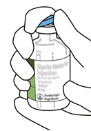Retirez le flacon vide qui contenait l’eau pour préparations injectables en même temps que la canule de transfert. Ils peuvent être jetés. |