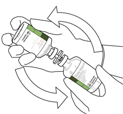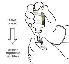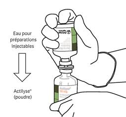 Prenez le flacon contenant la solution reconstituée d’ACTILYSE et agitez doucement jusqu’à dissoudre tout reste de poudre, mais ne remuez surtout pas, cela produira de la mousse.
