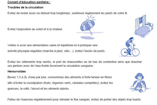 · Eviter l'exposition au soleil, la chaleur, la station debout prolongée, l'excès de poids.