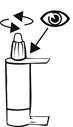 3. Pour l’utiliser, incliner votre tête légèrement vers l’arrière et maintenez le flacon compte-goutte à la verticale au-dessus de l’œil. Avec l’index de l’autre main, tirez légèrement la paupière inférieure vers le bas. L'espace créé est appelé le sac conjonctival inférieur. Eviter tout contact entre l’embout du flacon et vos doigts ou vos yeux. Afin d’instiller une goutte dans le sac conjonctival inférieur de l’œil ou les yeux atteint(s), appuyer brièvement et fermement sur le flacon. Grâce au dosage automatique, une goutte est libérée précisemment à chaque pompage. |