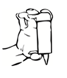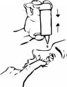 2. Placer le pouce sur la languette située en haut du flacon et l’index sur la base du flacon. Ensuite, placer le majeur sur la seconde languette située à la base du flacon. Tenir le flacon à l’envers. |