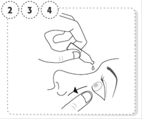 4. Pressez légèrement le récipient unidose afin de ne déposer qu'une seule goutte dans l'œil, puis relâchez la paupière inférieure.