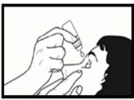 7. Comprimer ensuite le canal lacrymal pendant environ 2 minutes (en pressant un doigt contre le coin de l’œil proche du nez) et fermer l’œil (les yeux) et le(s) garder fermé(s) pendant ce temps. (voir Illustration 4). Cela va permettre à la goutte d’être absorbée par l’œil et probablement de réduire l’écoulement du médicament vers le nez par le canal lacrymal.