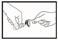 3. Avant d'utiliser le médicament pour la première fois, assurez-vous que la bague d'inviolabilité n'est pas rompue avant de dévisser le bouchon. Une légère résistance doit être ressentie avant de pouvoir rompre la bague d'inviolabilité (voir illustration 1).