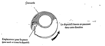 Pour ouvrir le Diskus, tenez-le dans une main et placez le pouce de l'autre main à l'endroit prévu à cet effet. Poussez aussi loin que possible.