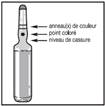 2 - De l'autre main, saisir la partie supérieure de l'ampoule, l'index posé contre le col, et le pouce posé sur le point coloré, parallèlement aux anneaux (ou à l'anneau) de couleur.