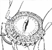 Le jour suivant, faites simplement avancer d'1 cran le cadran transparent en le tournant dans le sens des aiguilles d'une montre, comme indiqué par la flèche. Faites sortir le comprimé suivant. Rappelez-vous de ne prendre qu'1 seul comprimé par jour. |