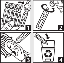 · Jeter immédiatement le récipient unidose après usage (schéma n°4).
