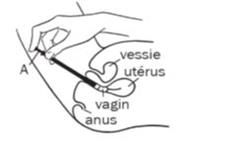 2- Placez l’applicateur à l’entrée de l’ouverture vaginale puis introduisez-le profondément dans le vagin, de préférence en position allongée. La façon la plus facile de procéder est de vous allonger sur le dos, les genoux repliés et écartés. 3- Maintenez l’applicateur dans cette position puis presser le piston (A) de façon à déposer la capsule dans le vagin. Retirez délicatement l’applicateur. |