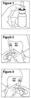 3. Fermez une narine et placez l’embout dans l’autre narine comme indiqué (Figure 2). Inclinez légèrement la tête vers l’avant, en maintenant le flacon bien droit.