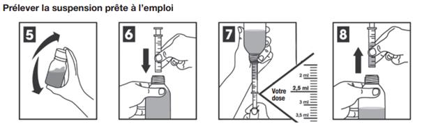 Les instructions concernant concernant ladministration la suspension buvable avec la seringue doseuse orale sont disponible à la fin de cette notice..