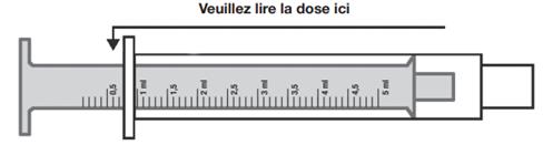 Le guide pratique pour la détermination de la dose en mL à prendre avec la seringue orale est inclus à la fin de la notice, voir « les informations suivantes sont destinées aux professionnels de la santé uniquement ».
