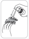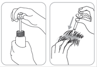 4. Pour l’application : diriger le pulvérisateur vers le centre de la surface à traiter ou sous les cheveux, presser une fois et étaler le produit avec le bout des doigts. Six (6) pulvérisations sont nécessaires pour appliquer une dose d’1 ml. |