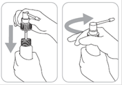 2. Insérer le pulvérisateur muni de la canule dans le flacon et le visser fermement