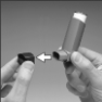1. Lorsque vous utilisez le dispositif pour la première fois, testez son bon fonctionnement. Retirez le capuchon de l’embout buccal en pressant doucement les côtés, entre le pouce et l’index et tirez-le.
