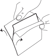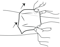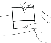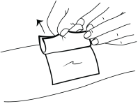 3. Retirez la première ailette de papier et présenter le pansement face adhésive sur la peau |