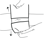 6. Saisir et retirer la deuxième ailette en papier et appliquer sans tension l’autre moitié du pansement. |
