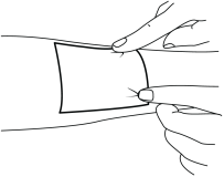 7. Bien lisser les bords du pansement pour améliorer l’adhésivité, puis retirer par le milieu les deux applicateurs transparents. Laisser le pansement en place pendant au moins 60 minutes. |