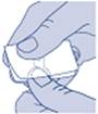 Ne pas forcer. En cas de résistance à l’ouverture, replacer le pouce comme indiqué ci-dessus. Une pression trop importante en cas d’erreur de manipulation peut entrainer une mauvaise ouverture de l’ampoule avec apparition de bris de verre, et risque de coupure.