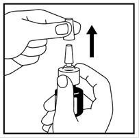 3. Tenez bien droit le pulvérisateur nasal, ensuite inclinez-le et pointez la buse loin de vous.