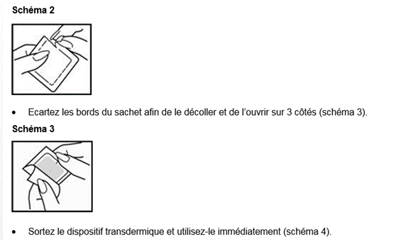 Les patchs usagés doivent être fermement pliés en deux de façon à ce que la face adhésive colle sur elle-même. Ils doivent ensuite être éliminés de façon sécurisée en les remettant dans leur sachet d’origine et doivent être rangés hors de la vue et de la portée d’autres personnes, particulièrement des enfants, jusqu’à leur élimination sécurisée. Demandez à votre pharmacien d’éliminer les médicaments que vous n’utilisez plus.