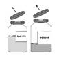 Retirer le deuxième capuchon protecteur de l'autre extrémité du système de transfert. Maintenir les deux flacons dans une position horizontale (évent vers le haut) et enfoncer rapidement l’extrémité libre du biseau au centre du bouchon du flacon de poudre. Veiller à ce que le biseau soit toujours immergé dans le solvant pour éviter un cassage précoce du vide. |