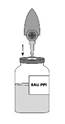Retirer le capuchon protecteur translucide du système de transfert et insérer à fond le biseau, ainsi dégagé, au centre du bouchon du flacon de solvant en opérant simultanément un mouvement de rotation. |