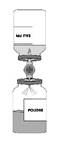 Placer immédiatement l'ensemble dans une position verticale, flacon de solvant bien au-dessus du flacon de poudre, de façon à permettre le transfert du solvant vers la poudre. Pendant le transfert, diriger le jet de solvant sur toute la surface de la poudre. Veiller à ce que la totalité du solvant soit transférée. A la fin du transfert, le vide est automatiquement cassé (air stérile). |