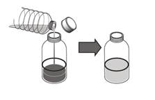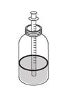 Ajouter de l’eau non gazeuse juste au-dessous de la marque présente sur le flacon en verre. Remettre le bouchon, retourner le flacon et bien agiter. Puis, compléter exactement avec de l’eau jusqu’à la marque présente sur le flacon en verre. Remettre le bouchon, retourner le flacon et bien agiter.