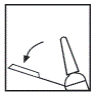 Placez le dispositif de protection en plastique contre une surface dure et stable et, d’une main, faites pivoter le corps de la seringue vers le haut de manière à introduire l’aiguille dans le dispositif de protection. Un clic audible confirme le verrouillage de l’aiguille dans le dispositif.