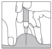 Poussez le piston à fond, à un rythme lent et régulier, pour administrer la dose appropriée. Continuez à pincer le pli cutané pendant l’injection, puis relâchez le pli cutané et retirez l’aiguille.