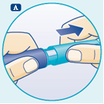 B Prenez une aiguille neuve à usage unique. Retirez la languette en papier et vissez l'aiguille de manière bien droite sur le stylo. Assurez-vous que l'aiguille soit solidement fixée.