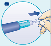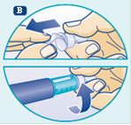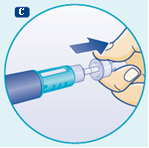 C Retirez le capuchon externe de l’aiguille et conservez-le. Après l’injection, vous en aurez besoin pour retirer correctement l’aiguille du stylo.