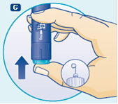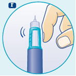 F Maintenez le stylo avec l’aiguille pointée vers le haut. Tapotez le haut du stylo plusieurs fois afin de laisser remonter les éventuelles bulles d'air vers le haut.