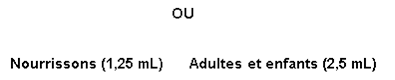 Adultes et enfants : remplir la cavité de mesure de 2,5 mL jusqu’au bord supérieur. |