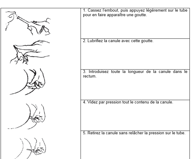 Ce médicament est utilisé par voie rectale. Il n'est pas nécessaire que vous vous allongiez pour vous administrer ce produit ni pour attendre qu'il produise son effet.