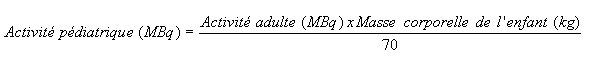 Chez l'enfant, l'activité inhalée est calculée en fonction de l'équation suivante: