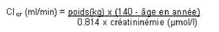 Clcr (ml/min) = 0.85 x clairance de la créatinine de l'homme.