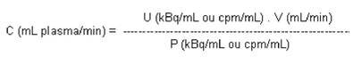 Le volume de distribution apparent V du traceur est obtenu en divisant la valeur de l'activité administrée par la valeur de l'ordonnée à l'origine. La clairance plasmatique C est alors donnée par: